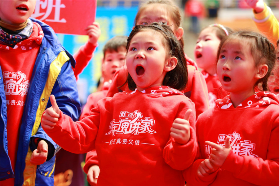 看著臺下那一張張綻放的笑臉,撲面而來的是孩子獨有的天真無邪的青春氣息;孩子們跟歐爸學(xué)習(xí),越來越自信,越來越綻放。對視著這一雙雙明亮清澈的眼睛,突然覺得臺上的歐爸就好像是一輪紅日,將冬天清晨升起的白霧一掃光!