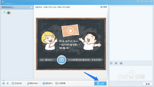 如果想要?jiǎng)e人看到自己,把攝像頭打開,點(diǎn)擊“上臺(tái)”按鈕即可,如圖所示