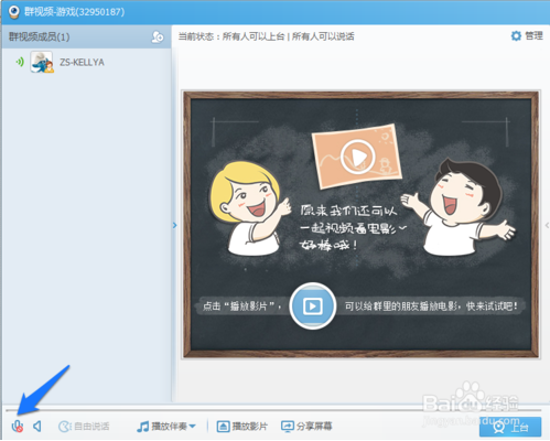 然后就打開了 QQ 群的群視頻窗口了,男的進(jìn)入以后會(huì)在左邊,女的進(jìn)入以后會(huì)在右邊,如圖所示