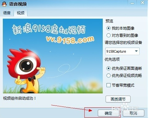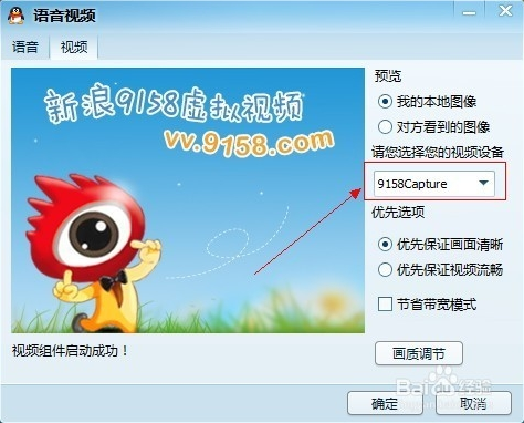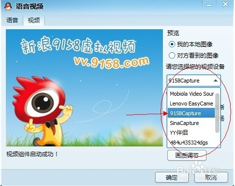 如果虛擬視頻正常安裝,這里打開應該有兩個選項,選擇9158或者sina即可