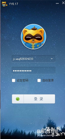 3:注冊(cè)完成之后,就可以登錄YY了,輸入剛才注冊(cè)的帳號(hào)和密碼,點(diǎn)擊登錄