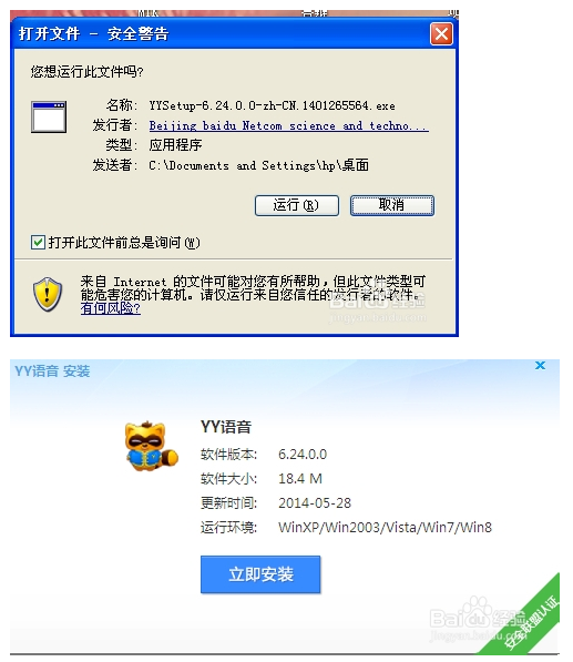 百度搜索YY語(yǔ)音,你會(huì)看到一系列搜索結(jié)果,選擇百度認(rèn)可安全的進(jìn)行下載;百度殺毒軟件會(huì)幫你檢測(cè)軟件的安全性。