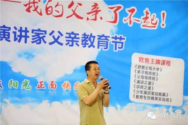 因此,5月1日,來自全國(guó)各地的父親攜妻子、孩子專程來到廣州動(dòng)能教育城,參加一年一度的《少年演講家中國(guó)父親教育節(jié)》,這個(gè)節(jié)日是歐爸(歐陽(yáng)維建老師)獨(dú)創(chuàng),以節(jié)日喜慶的形式舉辦的一次特殊的培訓(xùn)會(huì),包含三大教育主題: