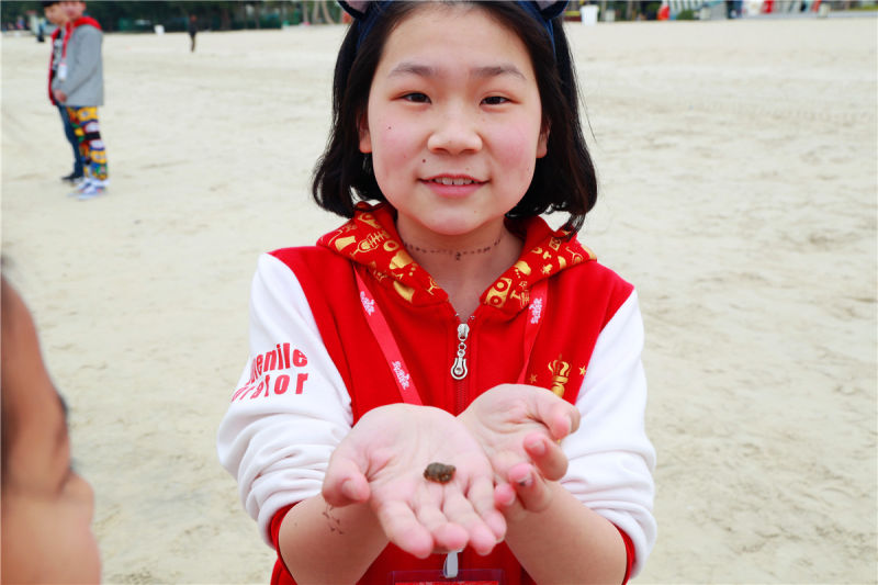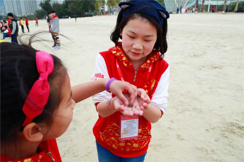歐爸給孩子們講完課后,就讓孩子們到海邊去活動(dòng),讓孩子們接近大自然??吹胶⒆觽?nèi)娜猓褙炞⒌淖バ『P?,摸小貝殼,挖水渠,不由得抓拍了幾張,更可愛的是,活?dòng)結(jié)束后,孩子們把抓到的小海蟹,活的貝殼,都放回了大海,表現(xiàn)了少年演講家的大愛。