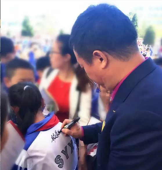 演講結(jié)束之后,臺(tái)下的孩子們紛紛挽留歐爸與歐爸合影留念。還有孩子讓歐爸簽在校服上!放學(xué)時(shí),排隊(duì)經(jīng)過演講臺(tái)的孩子,紛紛向休息的歐爸大喊“歐爸!歐爸!”當(dāng)歐爸向他們揮手時(shí),孩子們更是涌向臺(tái)邊的歐爸,把歐爸團(tuán)團(tuán)圍住!