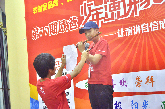 歐爸和孩子營(yíng)地講師世民老師特別安排少年演講家們自組織一臺(tái)晚會(huì),孩子們?cè)诓坏?小時(shí)的準(zhǔn)備中,各顯神通,充分發(fā)揮出少年演講家的千方百計(jì)的“地頭力”精神!