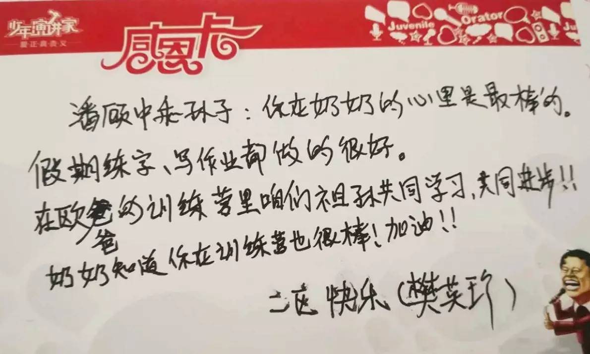 (樊奶奶寫給孫子潘顧中的“加油卡”)