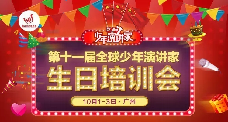 距離10月1日廣州·第十一屆少年演講家生日培訓(xùn)會(huì)還有5天,帶上一家人和歐爸歡度國(guó)慶!→http://mp.weixin.qq.com/s/iD91iEXRHzRTAvplRssxxg
