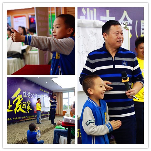 其中有一位孩子深刻贊同歐爸的思想,特意在臺前為歐爸真誠點贊、豎大拇指!歐爸也感受到了這位孩子愛的能量,將孩子請到臺上,給現(xiàn)場父母上了生動的一課!