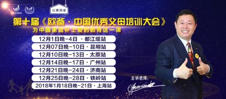 “動能崛起,大愛無疆”歐爸走到哪里,歐爸的大動能課堂就哪里。不論歐爸在哪開課,都有跟隨歐爸學習成長的少年演講家們和偉人父母們自發(fā)地來到歐爸身邊,去分享自己和家庭通過動能系統(tǒng)一步步走向積極和諧,這就是動能教育十年來通過數(shù)千萬中國家庭見證的教育奇跡!走進歐爸課堂,為孩子前途和家庭幸福保駕護航!敬請期待2017年12月30日-1月1日·北京【歐爸·中國少年演講家親子培訓大會】,2018年1月11日-14日北京【動能親人風暴大會】!