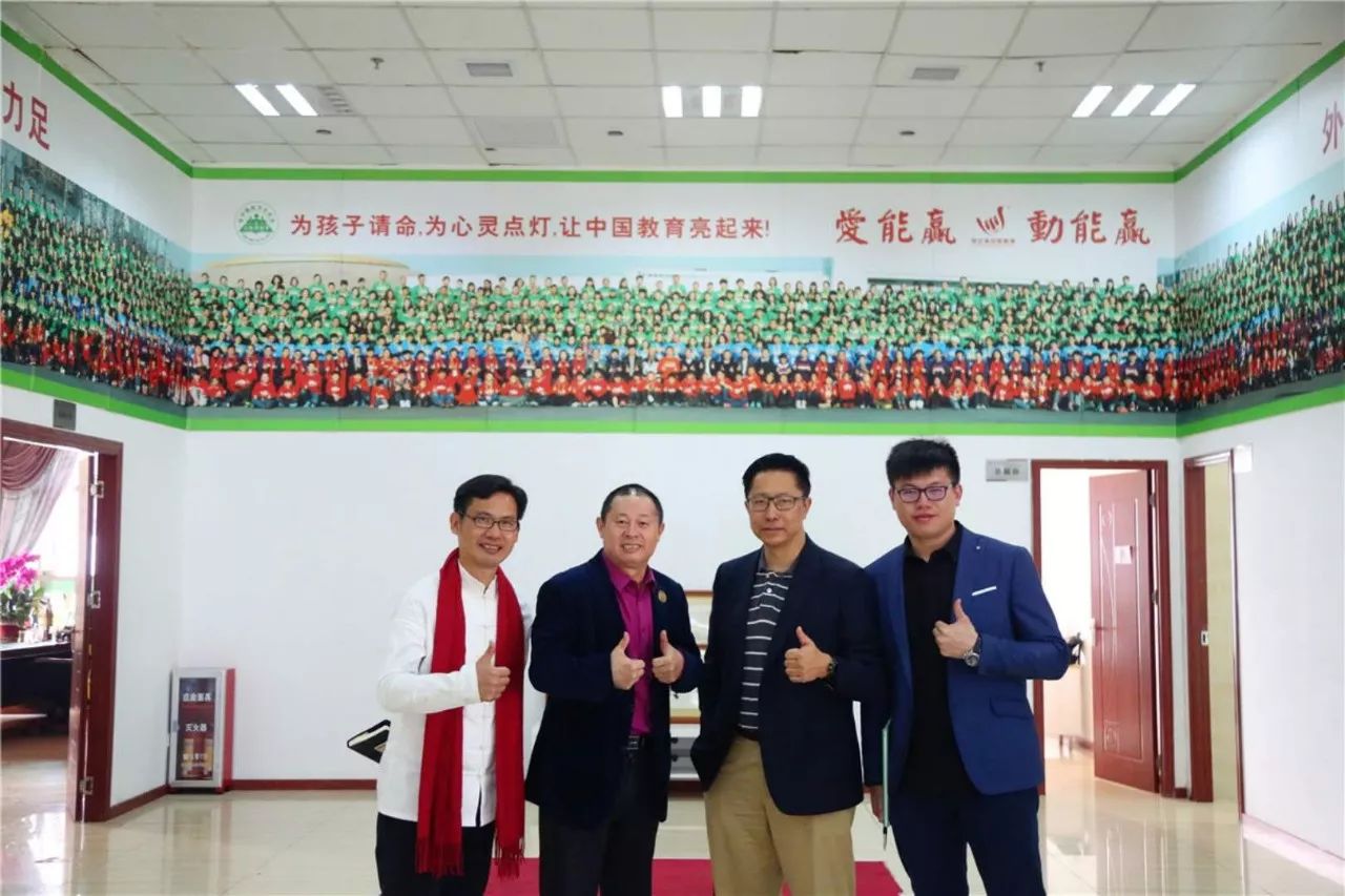 (圖為:動(dòng)能教育創(chuàng)始人歐爸、瘋狂英語(yǔ)創(chuàng)始人李陽(yáng)老師、感恩教父彭成老師、動(dòng)能教育集團(tuán)執(zhí)行總裁歐陽(yáng)威特在動(dòng)能教育城合影留念)