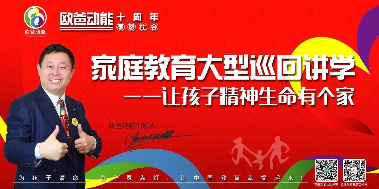 “讓孩子精神生命有個(gè)家——歐爸動(dòng)能十周年感恩社會(huì)·家庭教育大型公益巡回講學(xué)”已正式拉開帷幕,開啟歐爸動(dòng)能十周年大慶從內(nèi)部感恩向社會(huì)感恩的大幕!