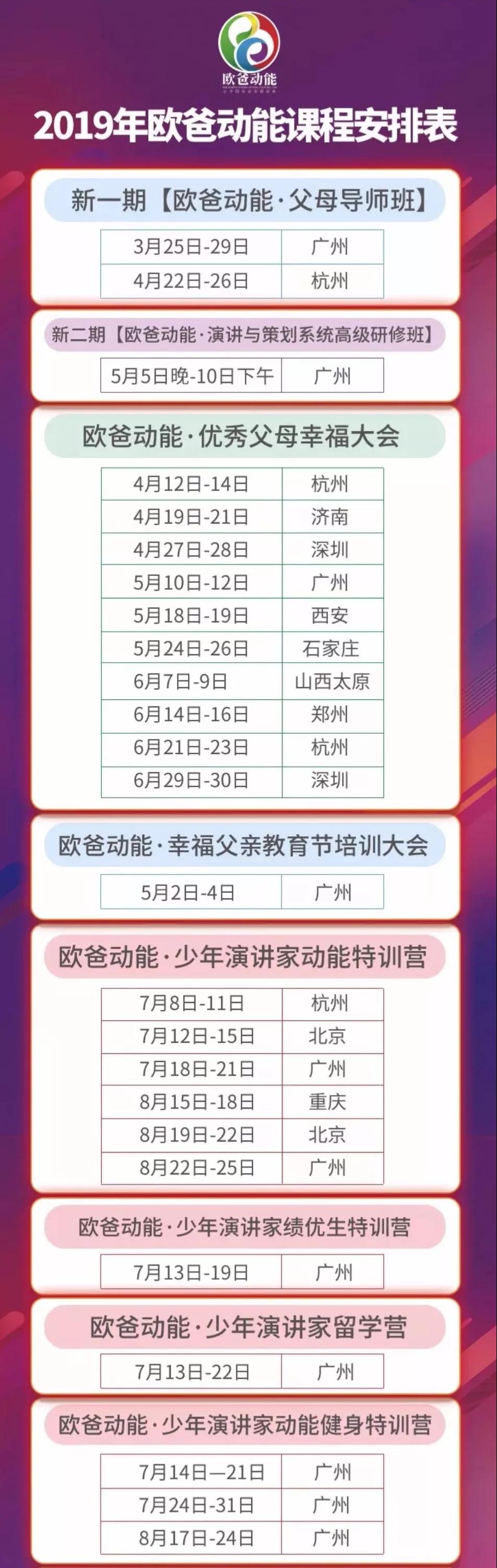2019年,歐爸的講課還有很多,整個歐爸動能教育大團(tuán)隊還有更多的動能講師在全國各地講課。