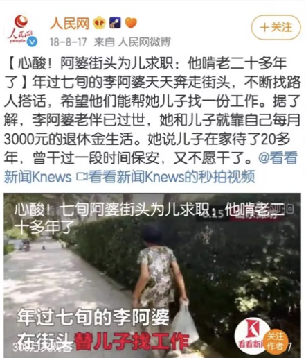 如今全靠自己3000元的退休金過(guò)活,而兒子已經(jīng)在家待了二十年了。