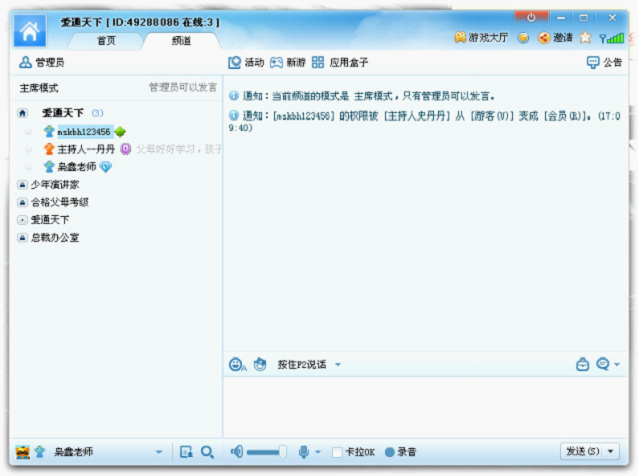 第5步:在這個小框里輸入YY群ID號:49288086,回車,就進(jìn)入愛通天下YY愛心電臺了,還可以互動的喲?。?!