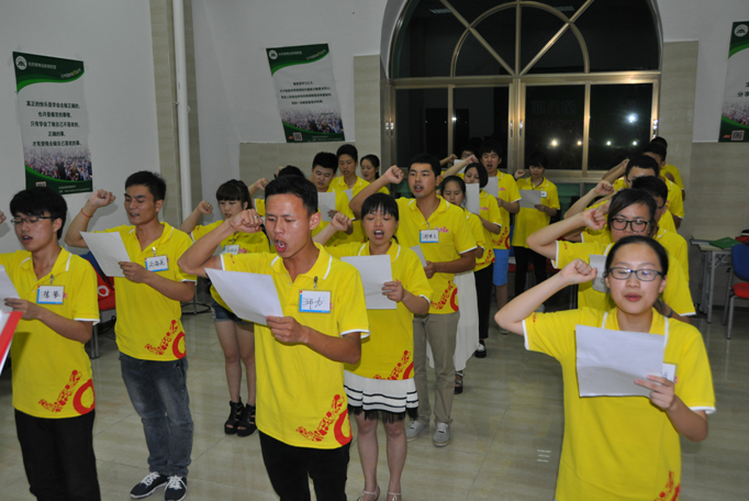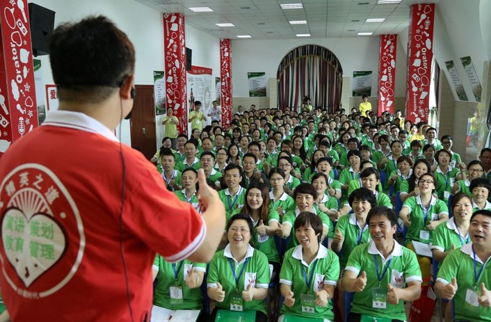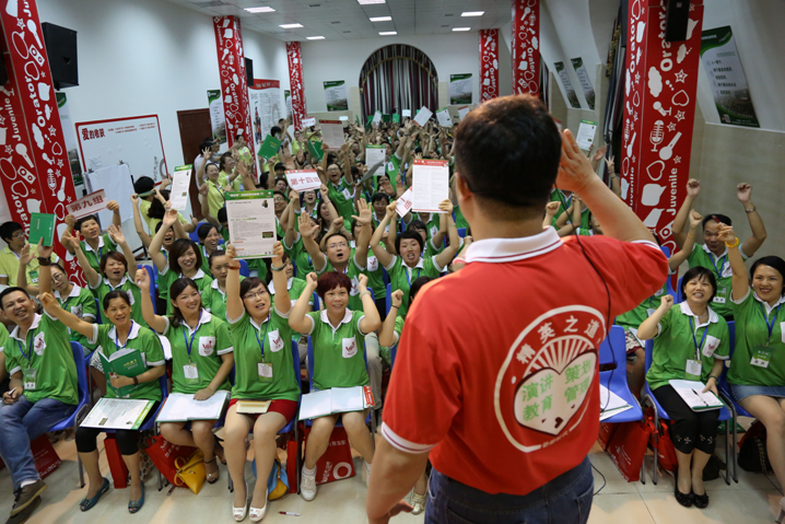 經(jīng)過長達20個小時的路程,終于在7月3日上午抵達廣州動能教育城。走進城內(nèi),進了電梯,上了八樓,剛出電梯就看到了“動能教育城”大海報加油站,看到公司前臺很熱鬧的樣子。一個親切的聲音叫住了我,把我從美好的遐想中拉回了現(xiàn)實,慌忙放下行李,換上了一件黃色衣服,提著一個紅色編織袋,就跟上叫我的那位姐姐進了一間教室,說是培訓已經(jīng)開始了,讓我趕快先去聽課,我悄悄跟了進去,坐在了最后一排第一個座位上,就這樣投入到第八期教育專員培訓當中。