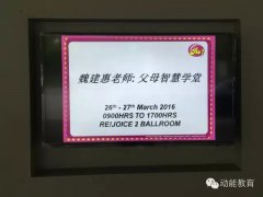 2016年3月26日、27日,動能教育名師課博會魏建惠老師在新加坡為期兩天的《父母智慧學(xué)堂》圓滿的落下了帷幕,學(xué)員們在魏老師的引領(lǐng)下開啟了修煉教育智慧的旅程。... ......詳情