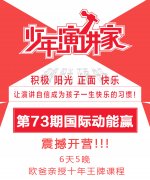 7月16日,少年演講家第73期國際動能贏在廣州動能教育城震撼開啟,來自全國各地的少年演講家和偉人父母... ......詳情