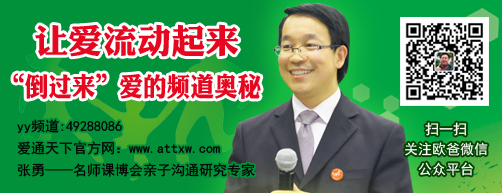 2013年11月1日19:30~21:00,“倒過來”愛的動(dòng)能教育網(wǎng)絡(luò)學(xué)堂將在YY語音平臺(tái)如期舉行,本期我們邀請(qǐng)到了師從歐陽維建老師,繼陶磊校長(zhǎng)、潘春玲校長(zhǎng)、劉鎖志校長(zhǎng)、關(guān)忻老師,成為歐爸的第五個(gè)成人弟子的親子溝通研究專家張勇老師,他將為我們講解《合格父母考級(jí)教材》(中小學(xué)版)第九篇:讓愛流動(dòng)起來--“倒過來”愛的頻道奧秘,敬請(qǐng)留意、敬請(qǐng)關(guān)注,多謝轉(zhuǎn)發(fā)!