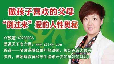 2013年12月29日,“倒過來”愛的動(dòng)能教育網(wǎng)絡(luò)學(xué)堂將在YY語音平臺(tái)舉行,本期我們邀請到了名師課博會(huì)最年輕講師、被歐爸譽(yù)為“最有靈性的、做家庭教育和學(xué)生潛能開發(fā)的最好的講師”徐晶老師為我們講解《合格父母考級教材》(中小學(xué)版)第三篇:做孩子喜歡的父母--“倒過來”愛的人性奧秘,敬請留意、敬請關(guān)注,多謝轉(zhuǎn)發(fā)!