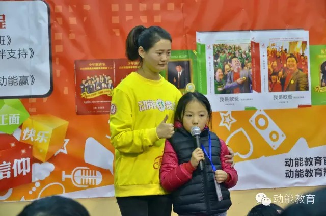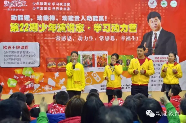 (歐爸培養(yǎng)的三星級動能教育專員王正松(麥霸)老師的主持結(jié)營典禮,少年演講家孩子與偉人父母PK,少年演講家孩子上臺演講分享自己的目標和收獲)