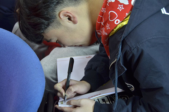 老虎可以看得出真的是一個很懂事的孩子,也是一個很認真的孩子,上課全神貫注聽講。歐爸說過聽話照做,而老虎就是這樣一個人,老師和教官講的要求,他都會聽話照做。聽課時候會想盡千方百計記筆記。在背誦價值觀之前會用不同顏色的筆標出重點難點,很細心!