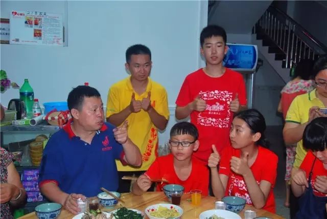 天邊的云彩遮住了太陽,天終于天終于給人間一絲涼爽了,這是歐爸在門口,35、36、39家庭的少年演講家們列隊(duì)歡迎。歐爸邁著大步走了進(jìn)來,看著歐爸吃我們做的飯,我們心中特別開心,好像一天的努力沒有白費(fèi)。