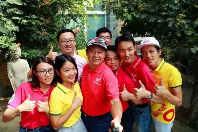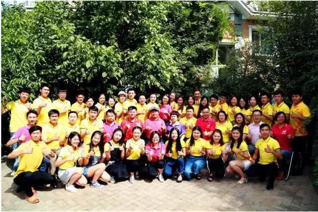 (歐爸與培養(yǎng)的動能教育專員團隊在北京動能別墅家園核桃樹下幸福合影)