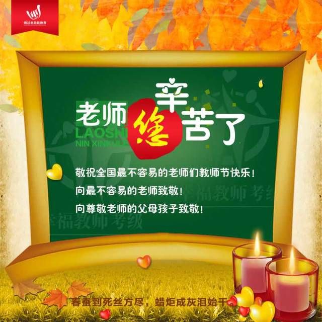 同樣為老師的我想想我們的老師都心疼!也許黨和政府心疼老師不容易, 所以才法定一個教師節(jié),目的是讓大家都來理解老師尊敬老師!用“教師節(jié)”撫慰老師長期痛苦煎熬的心靈!