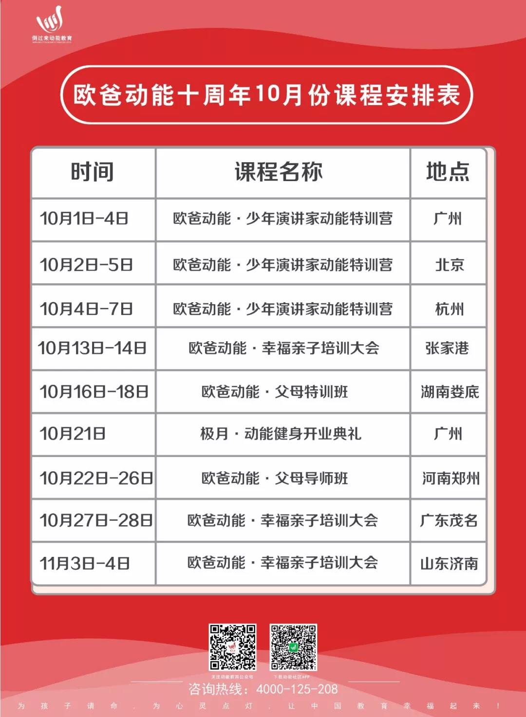 這是歐爸動能家庭教育大型公益巡回講學(xué)的主題語。歐爸動能教育預(yù)備在2019年10月8日之前的感恩回報(bào)期內(nèi),在全國推出22222場大型公益講學(xué)。