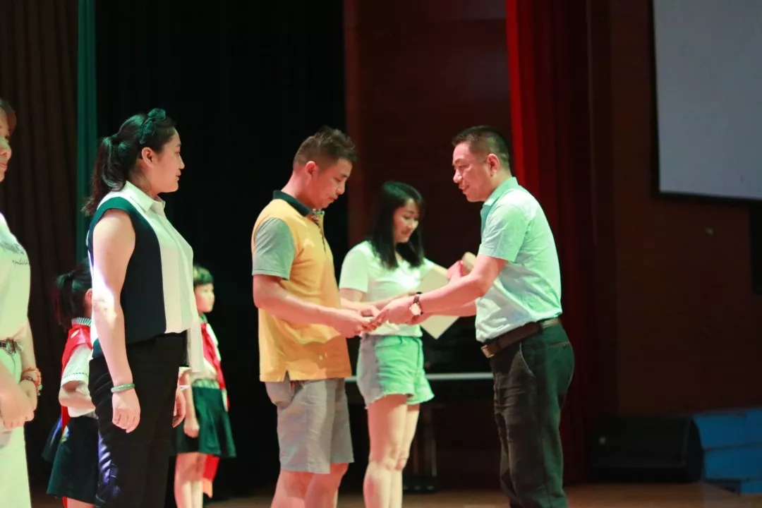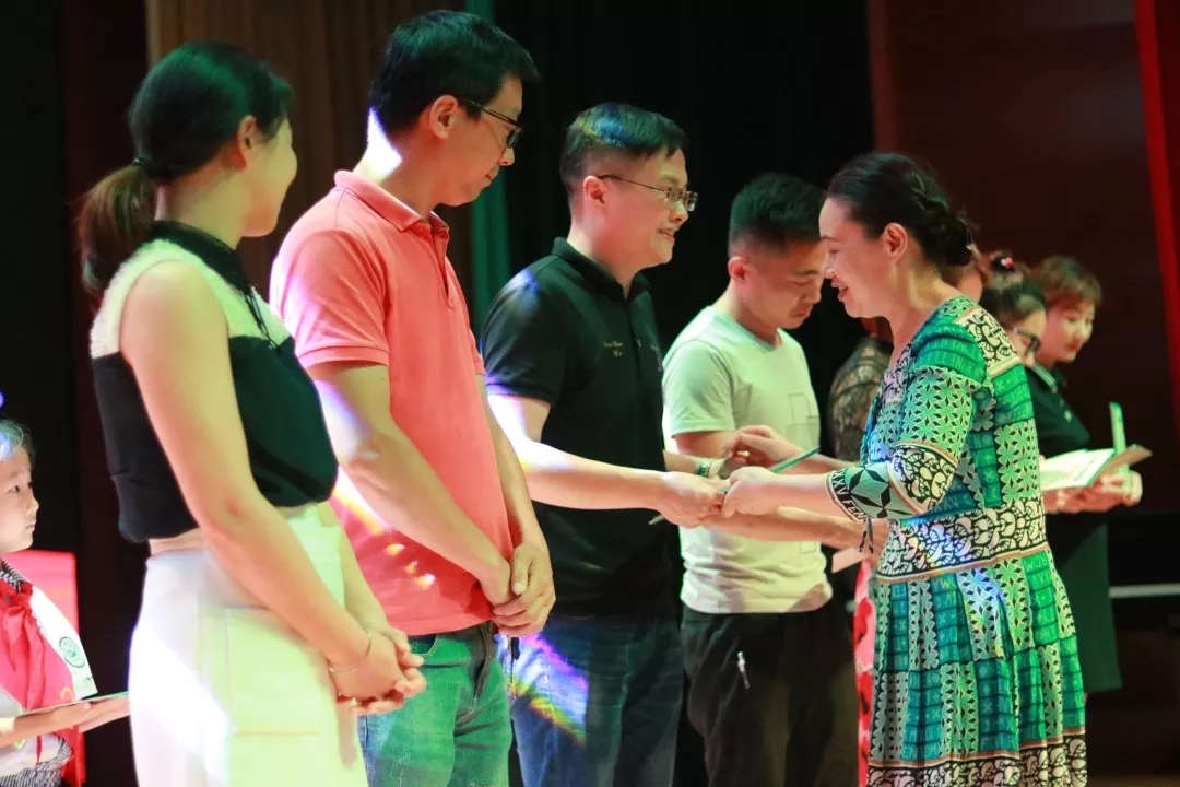 學(xué)校黨政領(lǐng)導(dǎo)和唐碧霞老師、樓于勤老師向父母學(xué)員頒發(fā)結(jié)業(yè)證書(shū)