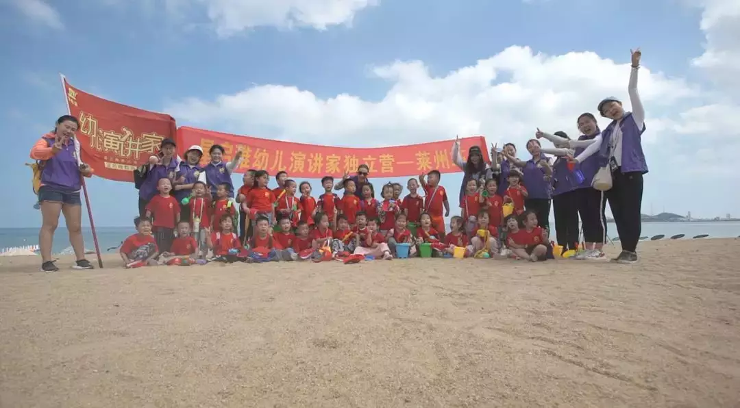 幼兒演講家們在竹林里上課,在臺兒莊大戰(zhàn)紀(jì)念館游學(xué),在萊州的海邊演講突破,全程沒有爸爸媽媽陪同,只有陪伴支持的小燕老師和動能專員們。