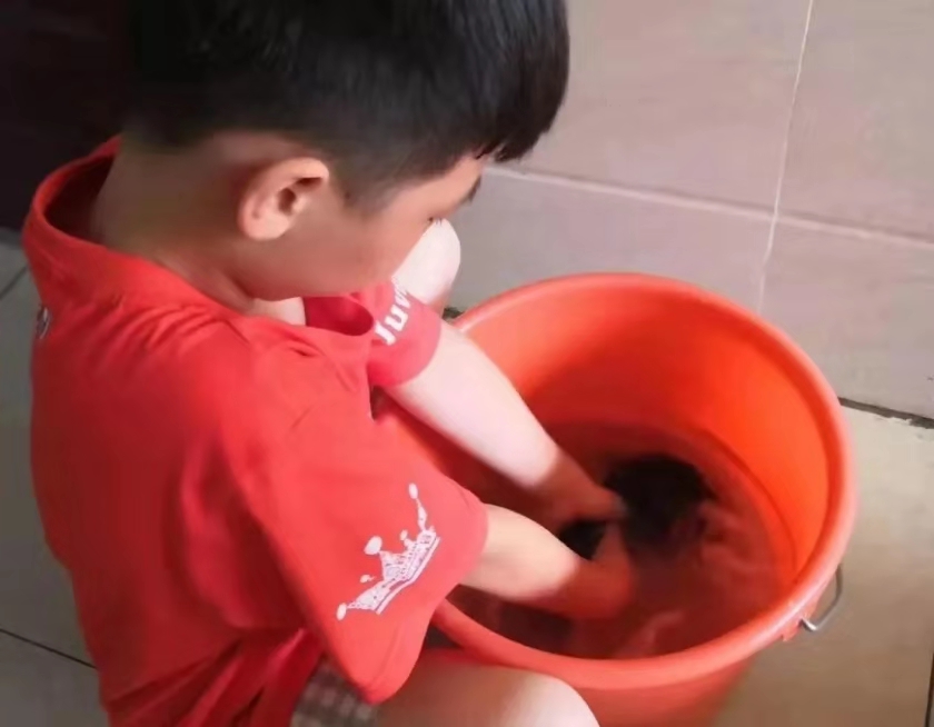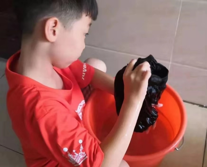 一位少年演講家一邊自己洗衣服,一邊說陪伴支持他的動能專員嚴(yán)厲。動能專員問:“看到自己洗的衣服,開心嗎?”孩子笑著說:“開心!”