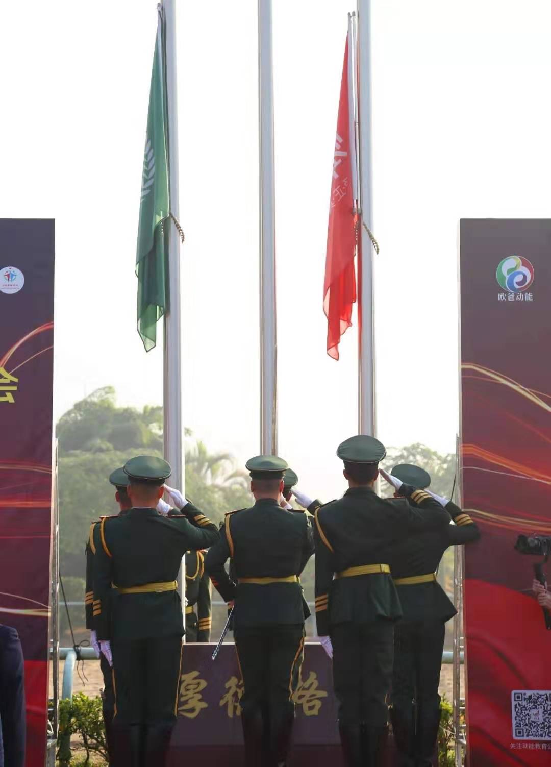 來自某部隊原國旗護衛(wèi)隊的優(yōu)秀軍官和戰(zhàn)士們,用響亮的口令和矯健的步伐,為歐爸動能親子研學(xué)基地落成典禮增添了特別的含義和正氣!