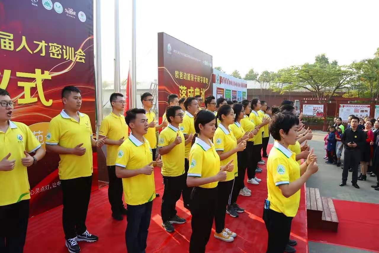 歐爸培養(yǎng)的動能專員——“走進孩子心靈的教育特種兵”,進行動能專員誓詞展示