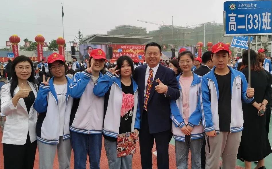 (南都實(shí)驗(yàn)中學(xué)學(xué)生與歐陽維建老師(歐爸)合影)