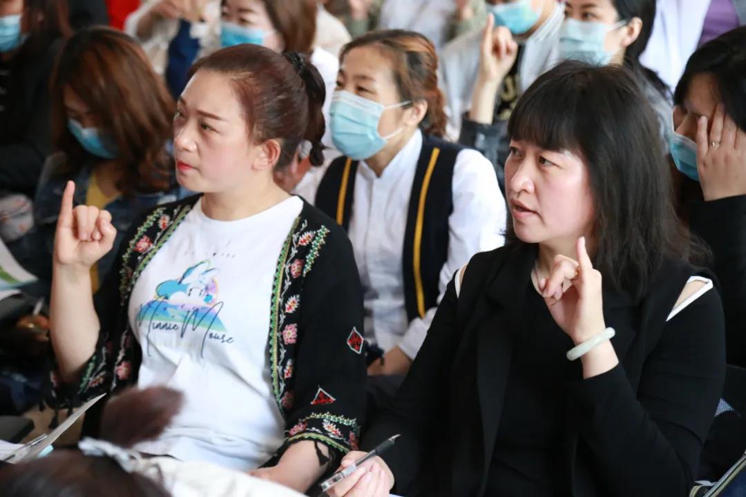 (濮陽華志中學(xué)的家長們現(xiàn)場(chǎng)互動(dòng),練習(xí)如何通過正面行為給孩子的自信“存款”)