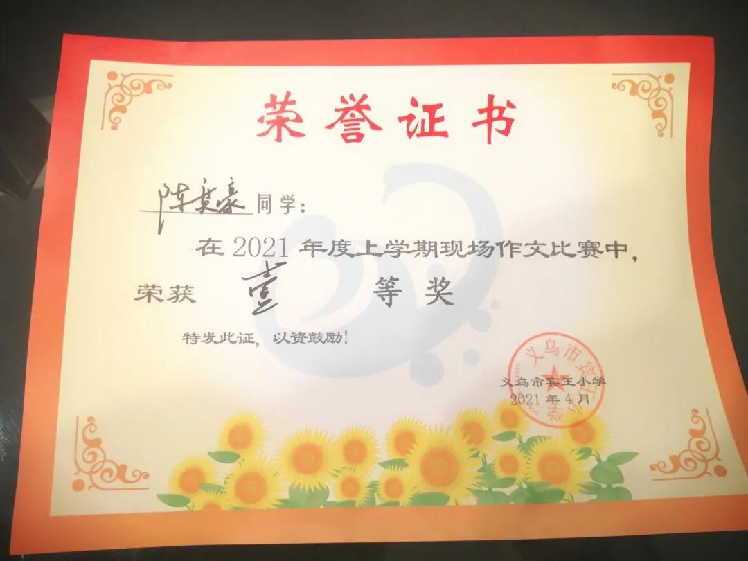 (少年演講家陳奕豪在作文比賽中榮獲一等獎(jiǎng))