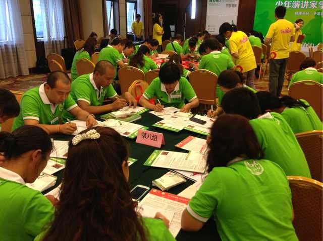 2013年7月15日,北京少年演講家學習動力營父母大學同時開營了。今天來自中國各地的少年演講家和偉人父母,相聚在一起北京市昆泰嘉禾酒店。今天上午9點開始,先有主持人進行簡單介紹之后,就引導家人們進會場,分好組。之后就教偉人父母們和孩子學習愛的鼓勵、愛的虎掌、愛的熊掌、愛的呼喚這四種掌聲。再向介紹相關一些情況,包括愛的誓言和語錄牌等。