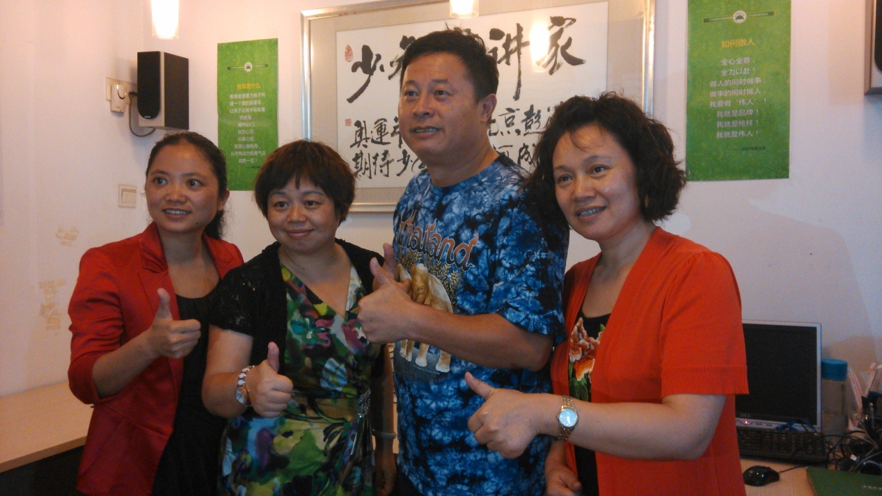 歐陽維建老師和黃芳園長、愛通天下教育思想研究院唐碧霞老師(右一)、歐爸弟子潘春玲老師(左一)合影
